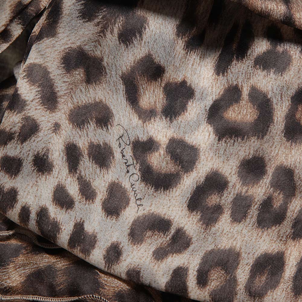 Nothing epitomises the flamboyant style of Roberto Cavalli more than the signature leopard print. This luxurious silk dress has a pretty ruffle hem with tiers of tulle underneath giving it beautiful volume. A large bow at the waist is topped with a diamante encrusted 'RC' charm, making this a beautiful statement dress.